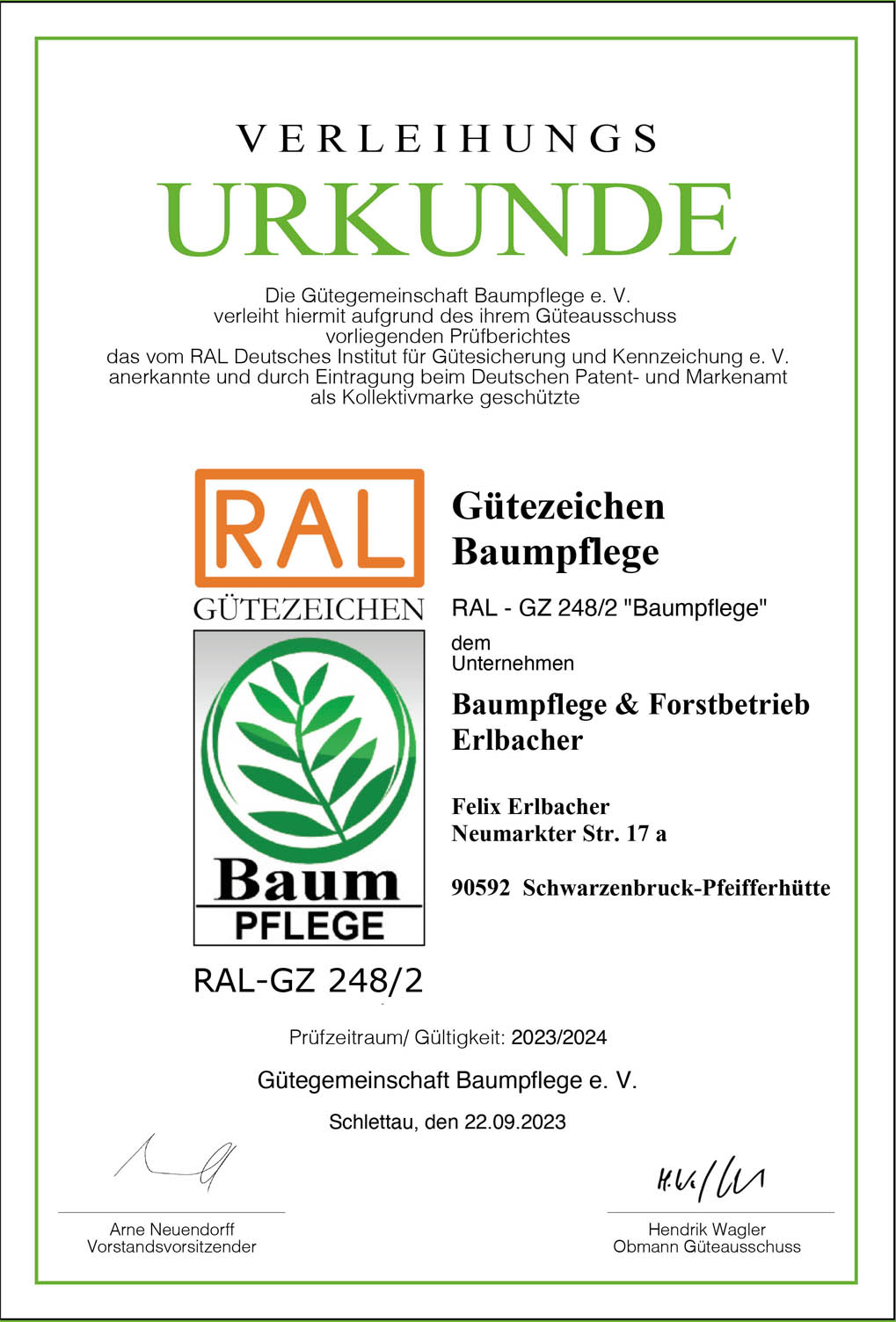 Unsere Mitarbeiter haben Leistungsprüfungen vor unabhängigen Gremien erfolgreich abgelegt und dürfen sich Geprüfte(r) Fachagrawirt(in) Baumpflege und Baumsanierung, European Tree Technican oder European Tree Worker nennen.